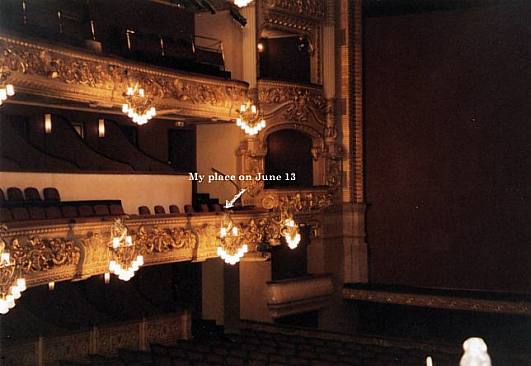 The Liceu is a lovely opera house, which has been predominently reconstructed in its old style. Before the performance we looked around in the house a bit, the Mirror Room in the foyer is very magnificent. My place at the very end of the so called Amfiteatre turned out to be excellent, not only because of the good acoustics, but also because of the good view, which isn’t available on all places in opera houses with this architecture.