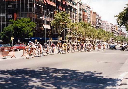 Whether with or without music and light, the fountain is sure an attraction. We had just reached the fountain, when the water startet to flow. The drizzle was a wonderful cooling on a hot day. The view from the Palau over the town and the fountain is very impressive. Inside of the Palau we visited an exhibition of romanic and gothic frescos. On our way back to town we passed the victorious group of the cycle racing.